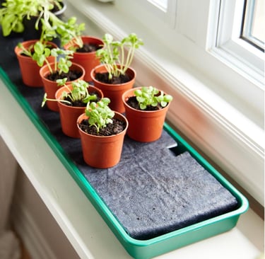 Place the mat under your seed trays, ensuring the edges are submerged in water. The mat will wick moisture up, keeping the seed starting mix evenly moist without overwatering. So simply place your seed trays on the mat and let it do the work for you. It’s a great tool for gardeners with packed schedules or seeds that take longer to sprout.